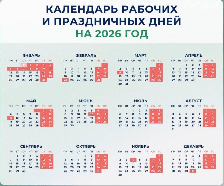 В 2026 году россиян ожидает 247 рабочих дней и 118 выходных и праздничных дней согласно утвержденному производственному календарю, передает ТАСС со ссылкой на Минтруд РФ.