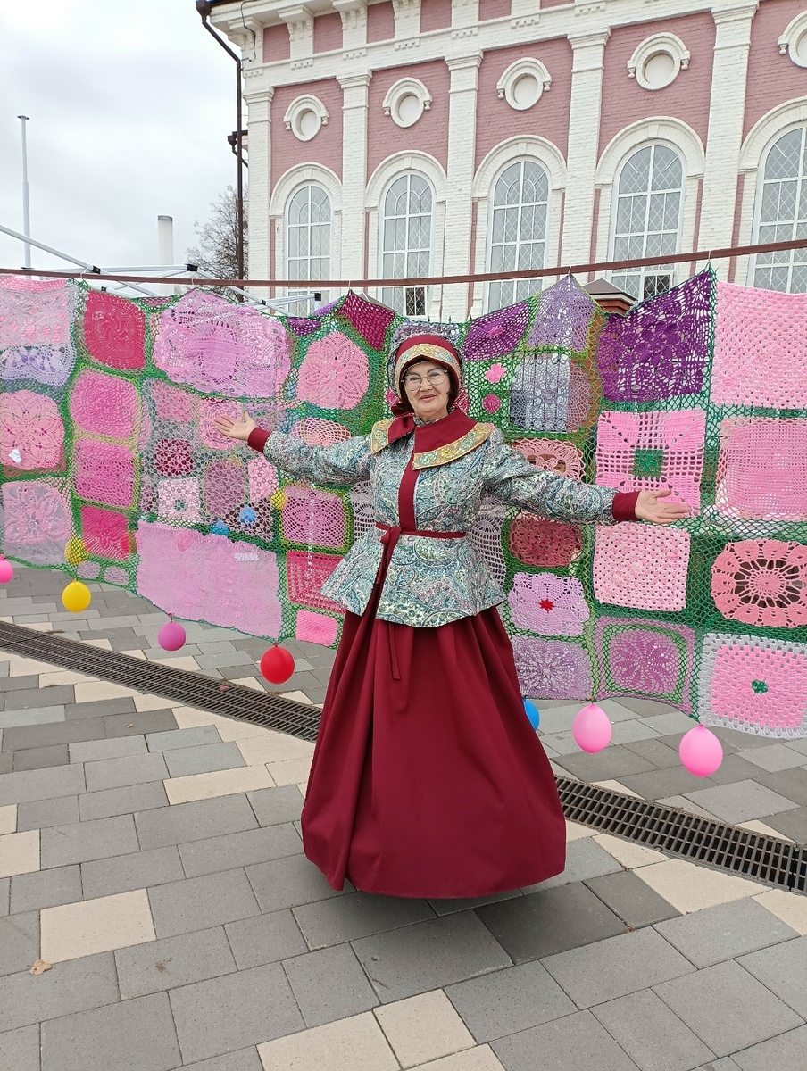 Вот Ольга Сергеевна объявляет старт шествию кружевниц, несущих иван-чайную скатерть. Длина этого чуда—35 метров с хвостиком: настоящий российский рекорд, связавший воедино 562 салфетки и рукодельниц от Лабытнанги (ЯНАО) до Хвалынска (Саратовская область)! Глядя на это диво дивное, переносишься мыслью в зеленеющие луга, поля, где то тут, то там вспыхивают огоньки кипрея—розовые, фиолетовые, сиреневые.