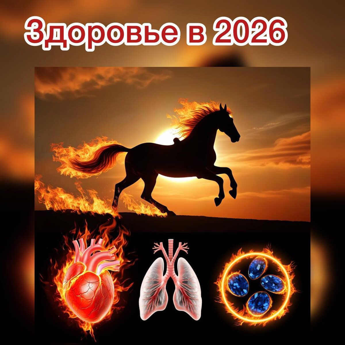 Прогноз здоровья на 2026: Год Огненной Лошади 🔥🐎 *Напоминаю, что первую часть прогноза вы можете прочитать здесь https://dzen.ru/media/id/64facac383912c11aefb379c/chast-i-prognoz-na-2026-god--god-ognennoi-loshadi-68a406f09598851adc18caa7 Вторая часть прогноза https://dzen.ru/media/id/64facac383912c11aefb379c/-2026-god-ognennoi-loshadi-instrukciia-po-vyjivaniiu-i-moscnomu-vzletu-68f3669a521f505ead5049a1 С февраля 2026 года к нам придет мощная, неудержимая энергия Янского Огня на Лошади (Бин У 丙午). Представьте коня, сотканного из пламени — это двойной, испепеляющий Огонь, который задаст тон всему году. Главная тема года — Избыточный Жар и Воспаление. Эта энергия будет проверять на прочность три ключевые системы нашего тела. 🎯 Кто в зоне риска? * ❤️ Сердце (Огонь): Перегрузка сердечно-сосудистой системы, беспокойство духа (Шэнь). * 💧 Почки (Вода): Риск "высыхания" и истощения жизненной энергии. Огонь выпаривает Воду. * 🌬️ Лёгкие и Кожа (Металл): Огонь плавит Металл, делая