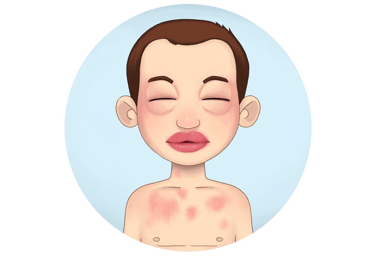 - Общие признаки: внезапная слабость, головокружение, чувство жара, зуд и высыпания, отёк губ, век, языка, резкое падение давления, возможная потеря сознания.