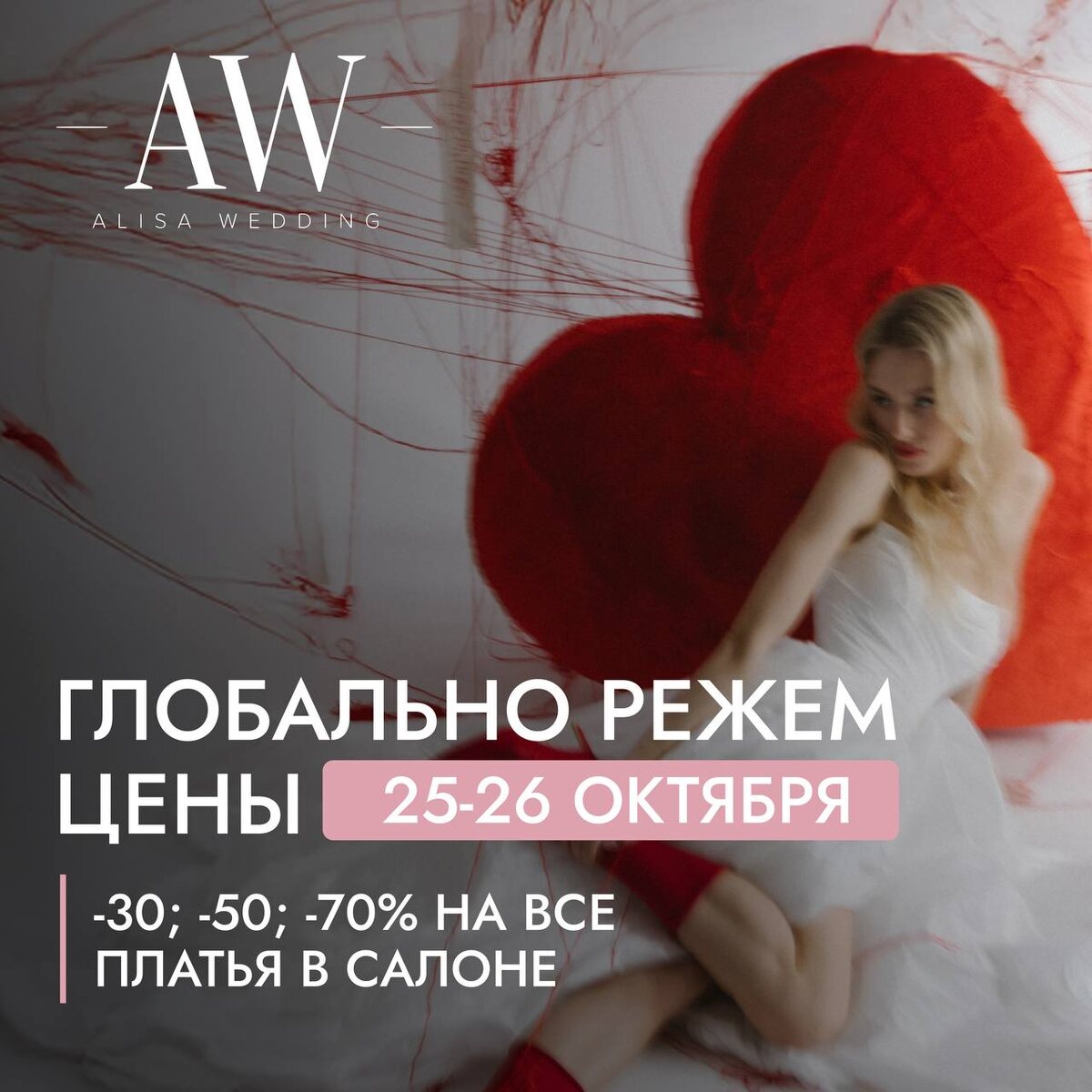 Дорогие невесты! Только 25 и 26 октября Скидки до 70% на ВСЕ свадебные платья! Да-да, абсолютно на всё: от классики до тех самых платьев, в которых сердце замирает уже в примерочной Не упусти шанс найти своё то самое платье по сказочной цене. Ждём тебя в Alisa Wedding Санкт-Петербург, ул. Гороховая 19 Записаться на бесплатную примерку 🤍