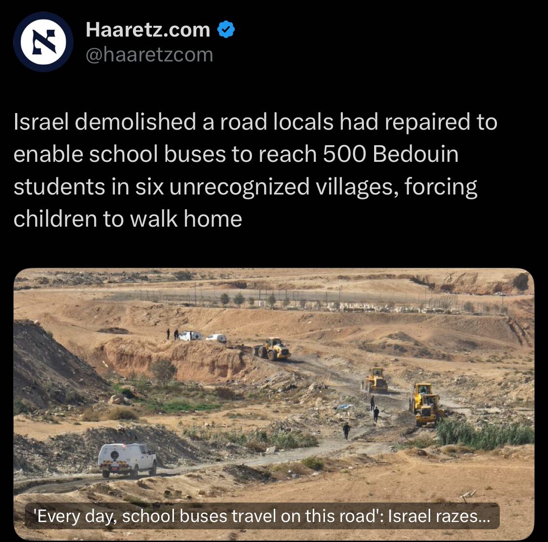 Israel 'demolishes repaired road that enabled school buses to reach 500 Bedouin children'