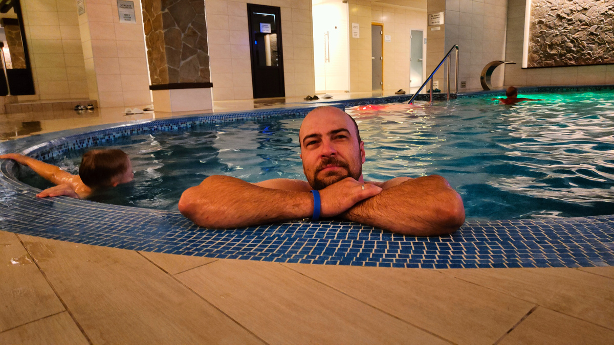 Если вы приехали на отдых с детьми, то им здесь очень понравится, так как можно вдоволь наплаваться в бассейне и согреться в финской сауне. Хоть джакузи и небольшое, но, поверьте, вы найдете здесь местечко.