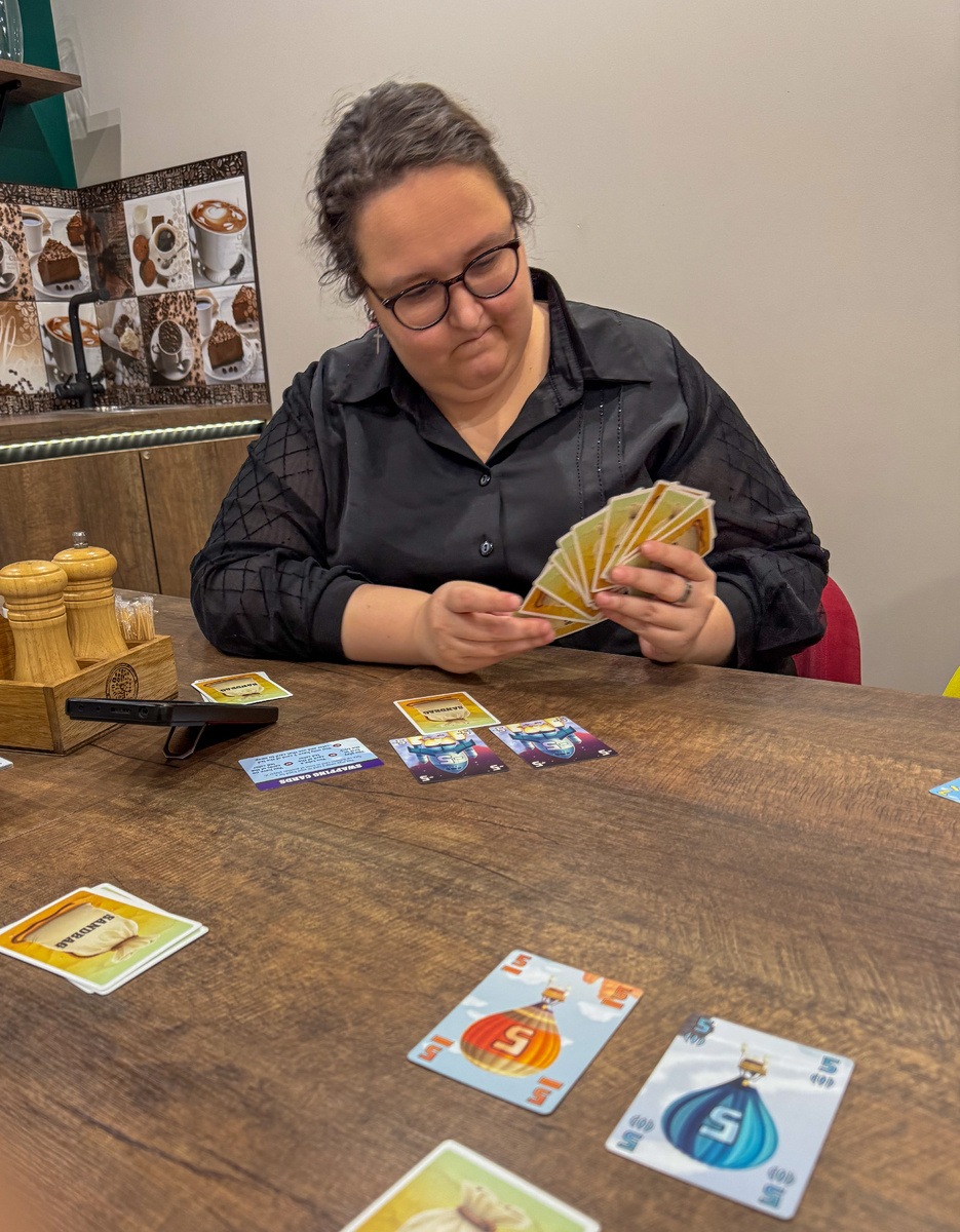 Сыграла в «Балласт» ещё до поездки в Москву — то ли в августе, то ли в сентябре — и вот не так давно повторила ещё и ещё, чтобы написать пост, потому что всё никак не могла разобраться в игре. Казалось, она такая малышка — а мозг мне сломала знатно. ПРАВИЛА Распишу их общо, потому что нюансов в игре много. В начале партии игроки раздают все карты поровну на всех участников. Если вас играет трое, то в партии не участвуют ракеты «-7» и одна из мастей, если, например, четверо, то в деле все масти, но по-прежнему нет ракет «-7» — только карты ракет с «-5» очками. Ваша цель на игру — в течение трёх раундов (раздач) набрать наименьшее число победных очков. Перед началом раунда игроки, получив карты, отдают по одной карте соседу справа и соседу слева. После этого они должны выбрать две карты своей руки, которые будут видны всем участникам, а так же одну карту поместить перед собой рубашкой вверх — это ваш начальный балласт. Открытые карты всех участников определяют козырь в игре: например, ес