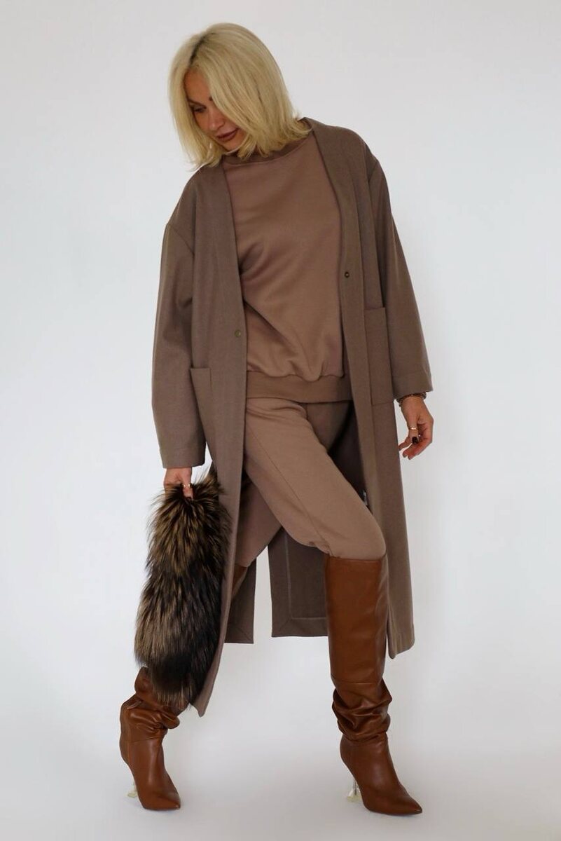 Костюм со свитшотом без капюшона, без принтов Цена: 5800₽ Размеры: M, L Состав: 80% хлопок, 20% пэ Утеплитель: начес барашек 📌Размерная сетка: Мерки костюма со свитшотом: — Размер М: Худи: длина 62, ширина 57, длина рукава 48 Брюки: длина 103, ширина по линии бедер 48, резинка 34-45 — Размер L: Худи: длина 69, ширина 61, длина рукава 51 Брюки: длина 105, ширина по линии бедер 51, резинка 37-52 На модели размер: L Параметры: 96/68/96 / 182 Пальто-кимоно в японском стиле: https://dzen.ru/media/matrosova/paltokimono-v-iaponskom-stile--13500-68ecedac4186d5225ef398c8 Пишите нашему менеджеру @Matrosova (+79022237939)