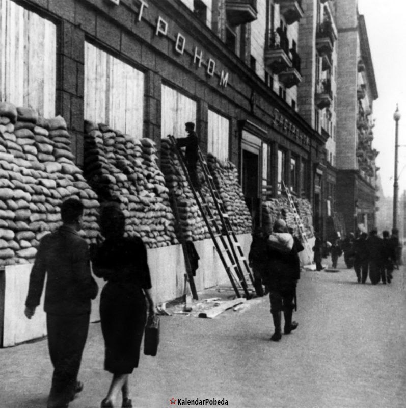 19 октября 1941 года — в Москве и прилегающих районах, не захваченных противником, было введено осадное положение. К этому моменту половина москвичей (2,2 млн человек) покинула столицу. Оставшиеся в городе копали окопы и траншеи, перегораживали улицы противотанковыми ежами и баррикадами, работали на предприятиях. Советское правительство — Совет народных комиссаров — работало в Куйбышеве, однако в Москве остался ГКО во главе с И. В. Сталиным. ⭐️ Календарь Победы