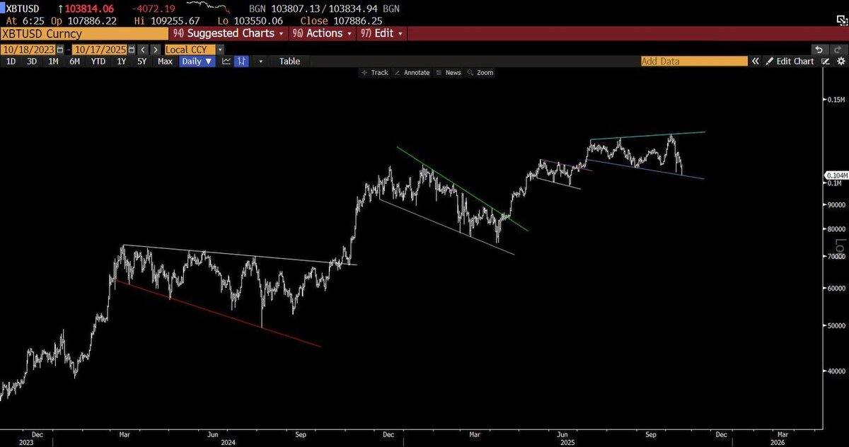 Биткоин: пляжный мяч под водой Опять вся крипто-тусовка в Twitter бросается друг в друга камнями. Кажется, чем ниже цена, тем громче взаимные обвинения. Я понимаю — больно. Но если отойти от эмоций, картинка на графиках выглядит совсем не катастрофично. Сейчас биткоин тестирует нижнюю границу расширяющегося клина — классическую бычью формацию. Рынок перепродан на две сигмы по логарифмической регрессии, а полосы Боллинджера сжались до минимума за всю историю (так узко было всего трижды). Каждый раз после этого цена выстреливала. Последний пример — осень 2023-го: +200% за полгода. Ситуация напоминает пляжный мяч под водой — чем сильнее его давят, тем мощнее будет всплеск. Вопрос не в том, будет ли движение, а в том, сколько терпения у вас осталось ждать. У меня - с запасом. Рынок — это 70-волатильный зверь. Если вы мысленно живёте от свечи к свече, каждая просадка кажется концом света. Но если ваш горизонт — годы, а не недели, волатильность превращается в инструмент. В шанс увеличит