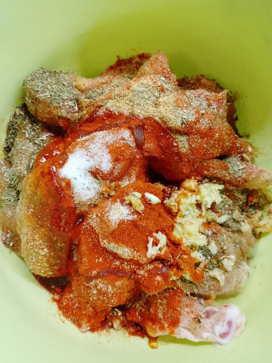 Мы привыкли, что если какое-то блюдо готовится в сухарях, то его обязательно надо жарить, но это не так. Например, крылышки в планировке из сухарей легко и просто приготовить в духовке, они будут нежные, сочные внутри и хрустящие снаружи. Понадобится: 1 кг. Куриных крылышек 20гр. Копченой парники 1 ч. л. Сушеного чеснока 4-5 зубчиков свежего чеснока 1-2 ч. л. Сушеных ароматных трав. Растительное масло ( примерно 50 мл.) Соль (примерно пол столовой ложки без горки) Чёрный молотый перец по вкусу. Панировочные сухари ( чуть больше пол стакана) Куриные крылошки разрезаем по суставам, используем только 2 части (лучевая часть крыла нам не нужна) К крыльям добавляем все специи, соль, масло и свежий чеснок, натертый на мелко терерке. Хорошо перемешиваеи и маринуем минут 20-30. Добавляем к крылышкам панировочные сухари и хорошо обваливаем в них курицу. Выкладываем на противень. Так же на противень с разных сторон наливаем не много воды, примерно пол стакана не больше. Вода нужна для