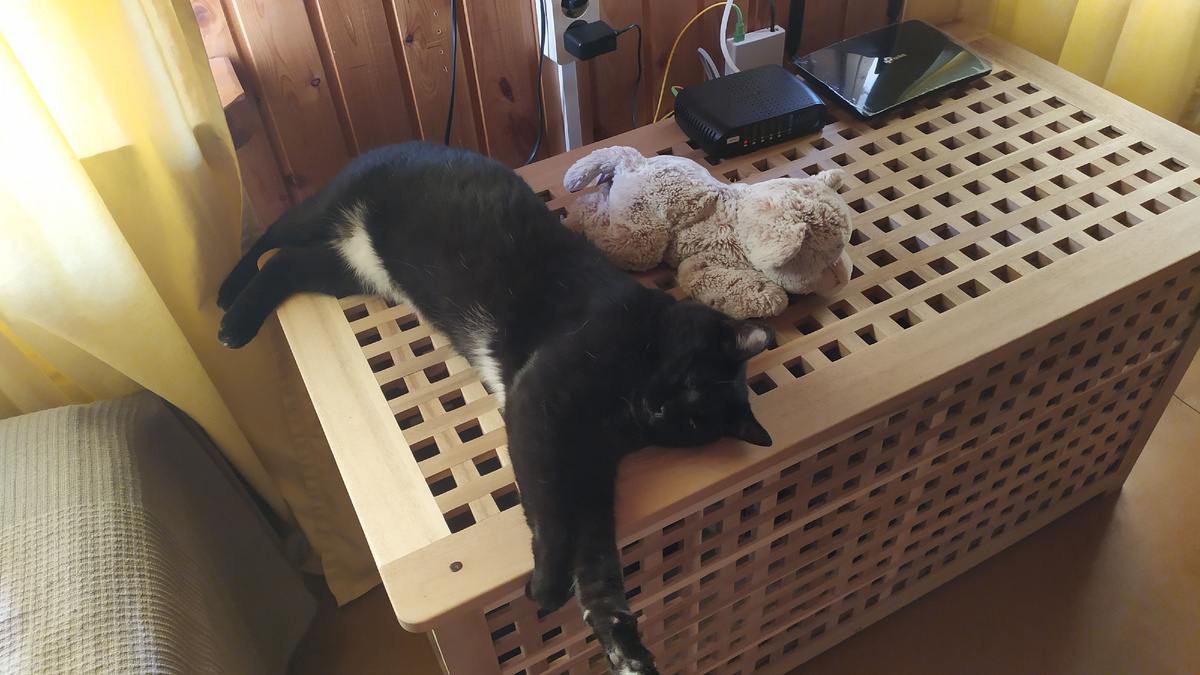 Кот постоянно живёт в деревне с прошлого года. До этого я его на зиму перевозила в город вместе с собой. Но прошлой осенью он никак не мог смириться с квартирой, что выражалось в истошном беспрерывном мяве сутки напролёт. В том числе и ночью. Я всерьёз опасалась, что ко мне нагрянут соседи с требованием перестать мучать животину.