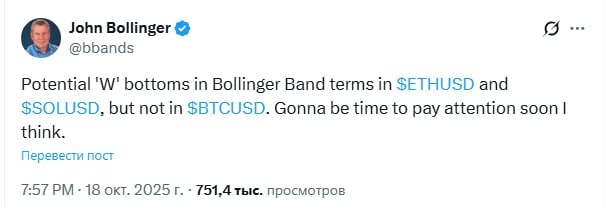 На графиках ETH/USD и SOL/USD возможно формирование "двойного дна" в терминах полос Боллинджера, но на BTC/USD этого не наблюдается