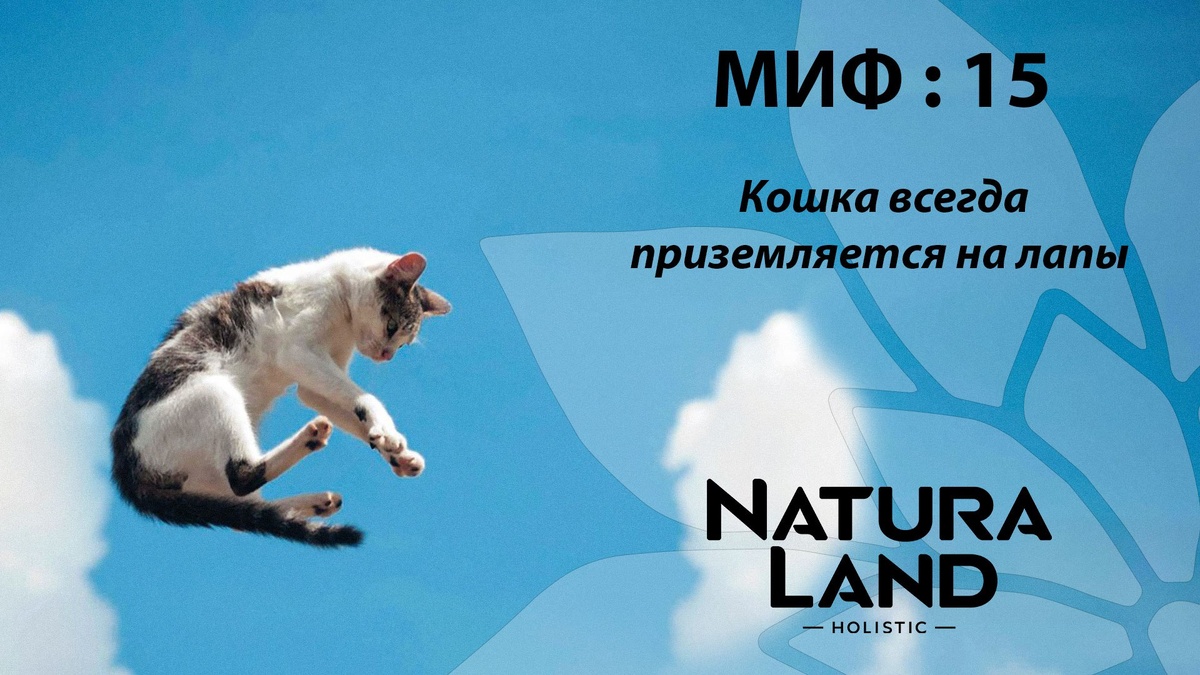 Миф 15: Кошка всегда приземляется на лапы Заблуждение: Считается, что у кошек «семь жизней», и они никогда не травмируются при падении. Реальность: Да, у кошек есть «правильный рефлекс», но при падении с небольшой высоты они не успевают сгруппироваться, а с большой — получают серьезные травмы.