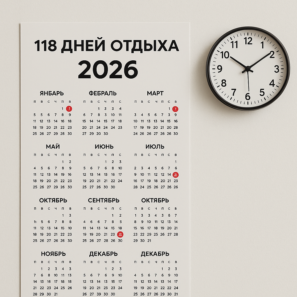 Опубликован производственный календарь на 2026 год: россиян ждут 118 дней отдыха (выходные + государственные праздники). Документ фиксирует переносы и «длинные» периоды, от которых зависят графики смен, отпусков, расчёт норм рабочего времени и доплаты.