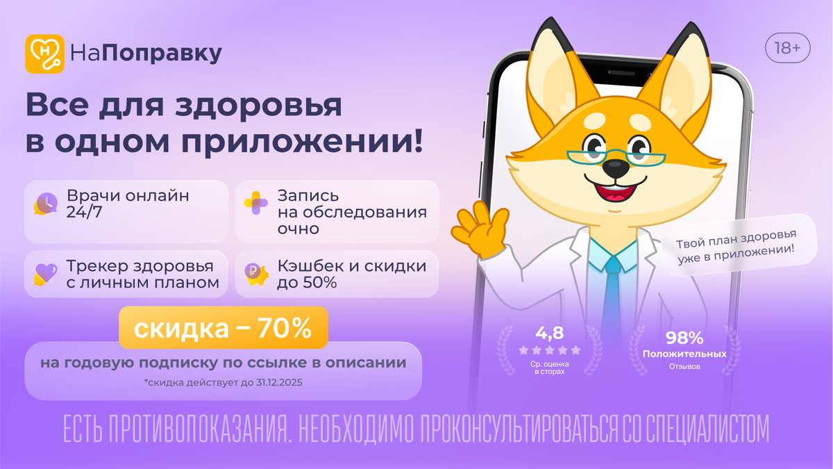 💊 Есть противопоказания, необходима консультация со специалистом. Акция доступна для новых пользователей старше 18 лет по всей России и за рубежом.