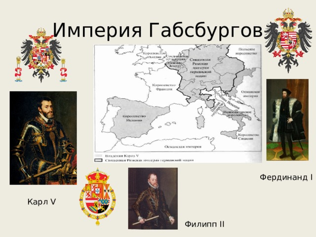 - Восхождение Габсбургов (с XIII в.): В 1273 году на престол приходит Рудольф I Габсбург, положивший начало эпохе, когда Австрия стала центром Священной Римской империи германской нации. Их девиз «Bella gerant alii, tu felix Austria nube» («Пусть другие воюют, а ты, счастливая Австрия, женись») символизировал стратегию династических браков. Через браки Габсбурги присоединили земли Бургундии, Испанию, Чехию и Венгрию. К XVI веку Австрия была ядром обширнейшего, истинно многонационального государства, включавшего немцев, чехов, венгров, хорватов, итальянцев, поляков и украинцев. Этот многонациональный характер стал как величайшей силой, так и главной слабостью империи.