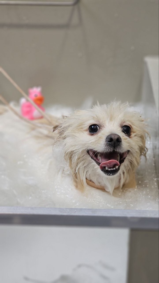 Жизнерадостная Фанни, как настоящая леди, принимает озоновую ванну, для поддержания красоты своей шерстки 😍