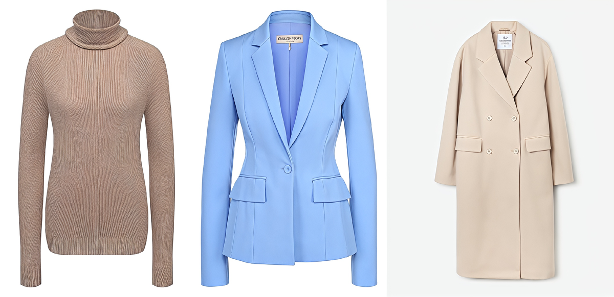 Тепло создаётся не общим объёмом одежды, а защитой конкретных зон. Высокий воротник закрывает шею — одну из главных точек теплопотери. Водолазка с горлом работает эффективнее шарфа, при этом сохраняя изящество линий.