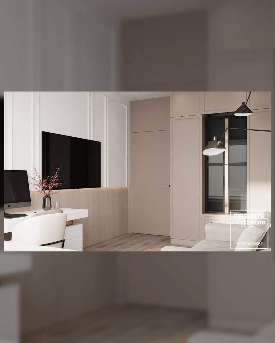 В ЖК «Гродеков» эскизы кабинета, созданного дизайн-студией Magenta, передают уникальную атмосферу полного уюта и сосредоточенности. Это пространство имеет двойное прочтение: в первую очередь — это функциональный кабинет для работы и творчества, где каждый элемент — от мягкого света до продуманных деталей — способствует вдохновению и погружению в мысли.