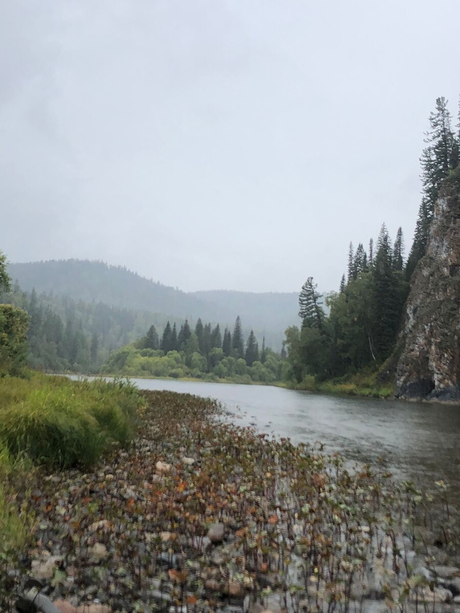 Утро второго дня встретило нас прохладой и густым туманом, который медленно поднимался над рекой. Костёр ещё тлел, пар от кружек с чаем смешивался с дымом, а разговоры с вечера продолжались, будто никто и не ложился. Вроде бы всё шло по плану — завтрак, сбор лагеря, проверка снастей, загрузка вещей в «Урал». Мы выдвигались дальше, к следующей точке, где по рассказам проводников стоял старый охотничий домик с баней. Дорога была непростая. Иногда машина буквально прыгала на кочках, гремела подвеска, кто-то ухитрялся задремать, кто-то ловил момент и снимал всё на телефон. Дважды пересекали Кию — вода холодная, течение сильное, но наш «Урал» шёл уверенно, будто создан именно для таких дорог. Когда добрались до домика, все будто ожили. Посреди тайги стоял настоящий деревянный сруб, рядом маленькая банька, запах дров, сырой мох под ногами. Внутри — стол, пара лавок, несколько спальных мест и старый металлический чайник, закопчённый до черноты. Комфорт по-сибирски, но после дороги — это был п