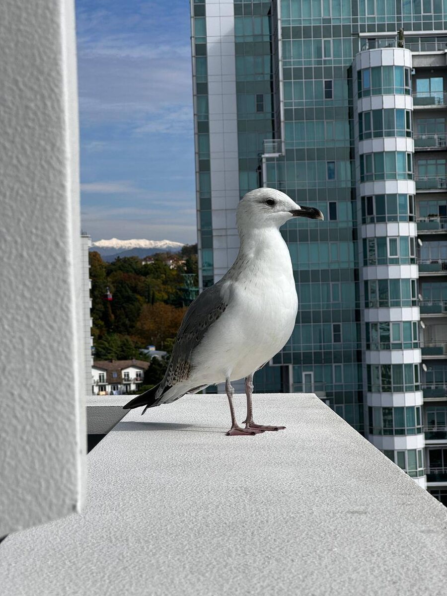 🕊 На балкон одного из номеров вновь прилетела чайка — постоянная гостья Отеля Sea Galaxy!