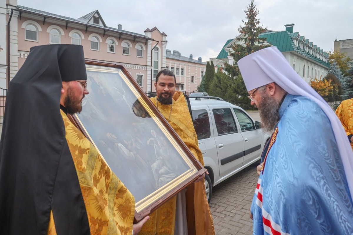 Сегодня митрополит Тамбовский и Рассказовский Феодосий в Вознесенском женском монастыре города Тамбова возглавил встречу мироточивого образа Божией Матери «Всех скорбящих Радость».