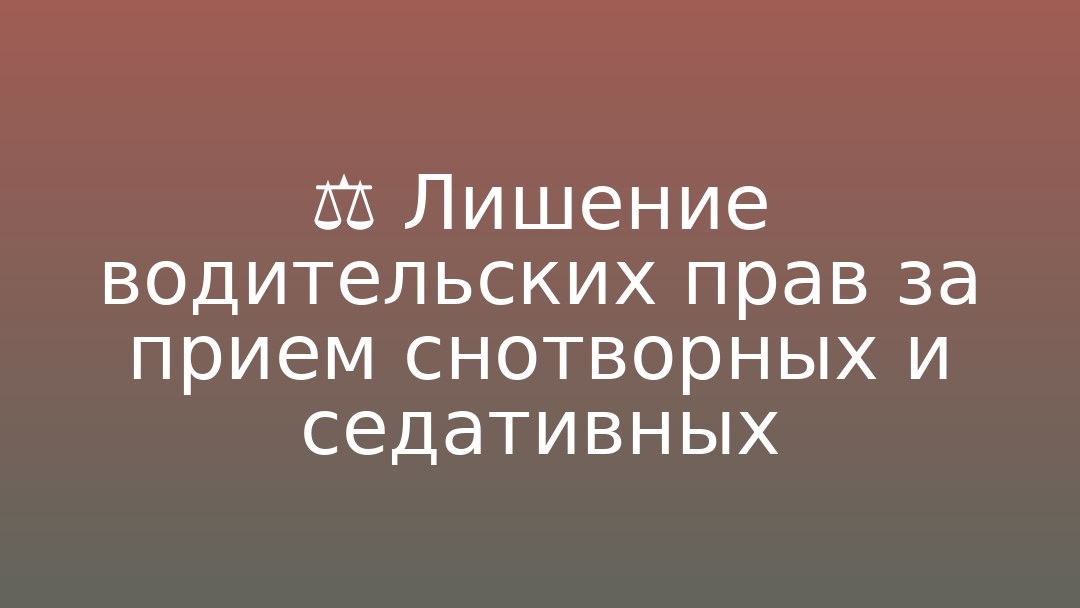 В Госдуме рассмотрен законопроект, предусматривающий лишение водительских прав за прием снотворных и седативных препаратов, ухудшающих внимание и реакцию. Законопроект уже прошёл первое чтение. Предусмотрено введение официального перечня запрещённых для водителей препаратов и маркировка соответствующих лекарств. За нарушение предлагается штраф до 45 тысяч рублей и лишение прав на 1,5–2 года.
