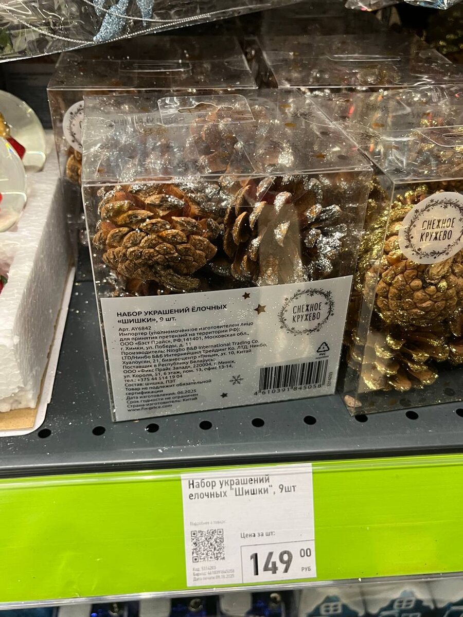 Набор елочных украшений "Шишки", 9шт. 149 рублей. Они очень красивые, чуть позже обязательно зайду возьму их. За свою цену прекрасные.
