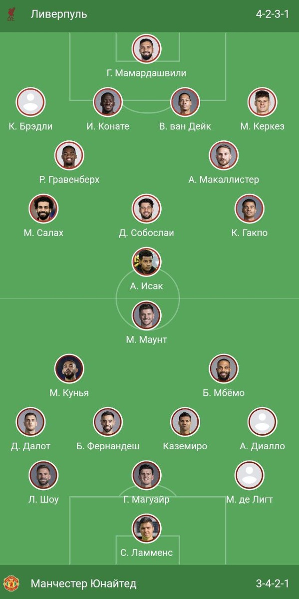 Стартовые составы на матч Ливерпуль - МЮ