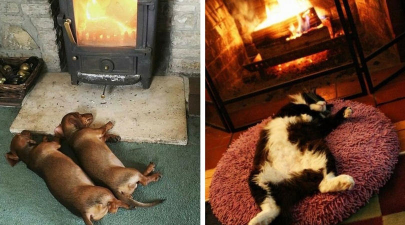 И собака тянется к теплу.