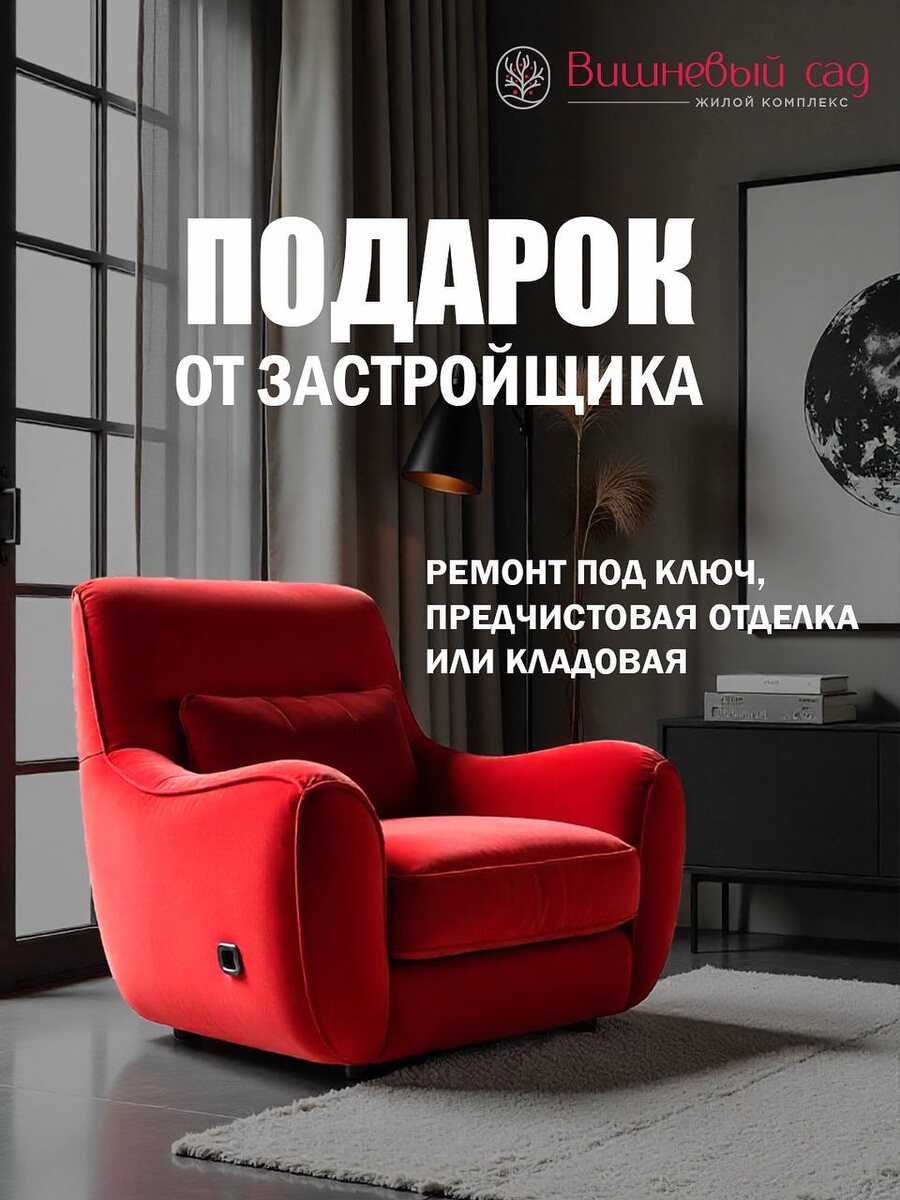 Знаете, что самое сложное после покупки квартиры? 🔨 Не ипотека. Даже не переезд. Самое сложное — это ремонт. Бесконечные стройматериалы, поиск бригады, пыль, стресс и непредвиденные расходы, которые съедают ваш бюджет и нервы. А что, если мы уберем эту главную проблему? Дарим в ЖК «Вишневый сад» не просто скидку, а готовое решение. Ваш личный подарок на выбор: 🏆 ВАРИАНТ 1: РЕМОНТ ПОД КЛЮЧ Получите ключи и просто заносите мебель. Ваша мечта без забот и лишних трат. 🎯 ВАРИАНТ 2: ПРЕДЧИСТОВАЯ ОТДЕЛКА Хотите создать свой дизайн? Идеальный старт! Мы делаем всю черновую работу: выключатели, розетки, подготовленные стены. Экономьте время и деньги на самом сложном этапе. 📦 ВАРИАНТ 3: КЛАДОВАЯ В ПОДАРОК Дополнительные метры — это всегда выгодно и умно. Ценный актив для хранения, который повышает комфорт и стоимость вашей квартиры. Количество квартир, участвующих в акциях, ограничено