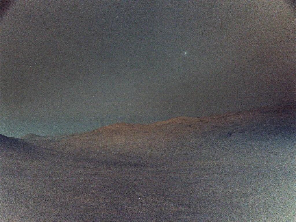 Луна над небом Марса На этом марсианском небесном пейзаже самым ярким объектом является Деймос, самый маленький из двух спутников Марса. Это изображение было получено до восхода солнца марсоходом Perseverance 1 марта 2025 года.