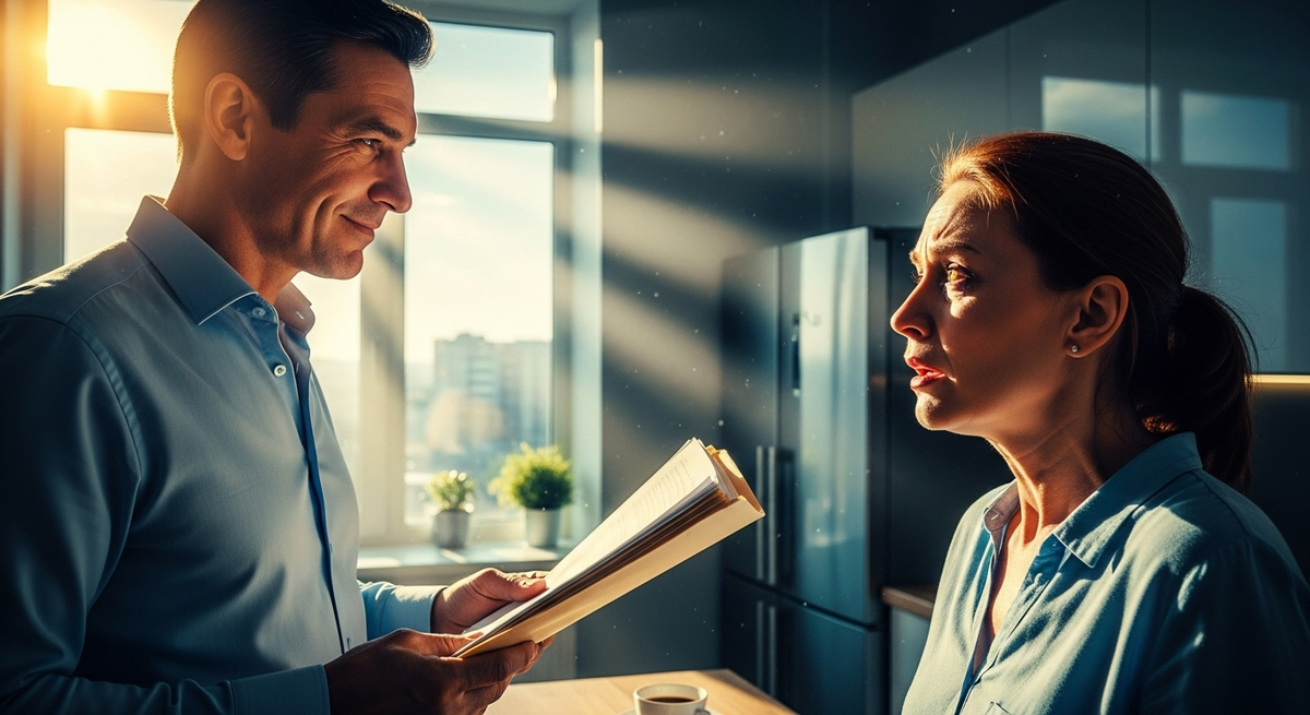 Когда она уснула, документы остались на кухонном столе — совсем ненадолго, она планировала убрать их утром в сумку. Но Виктор вернулся раньше — посреди ночи. Его переговоры закончились успешнее и быстрее, чем он рассчитывал.