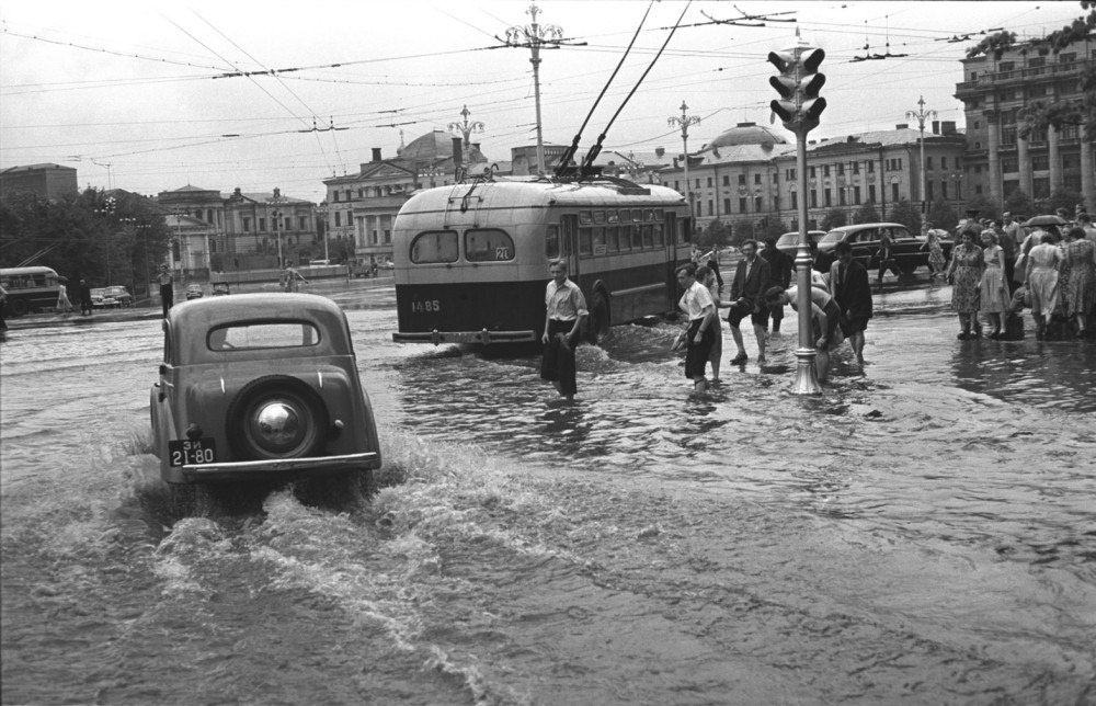 Москва после ливня. Манежная площадь, 1956 год. #СССР #Москва #год_1956 4M History 🫶🏻 Подписаться