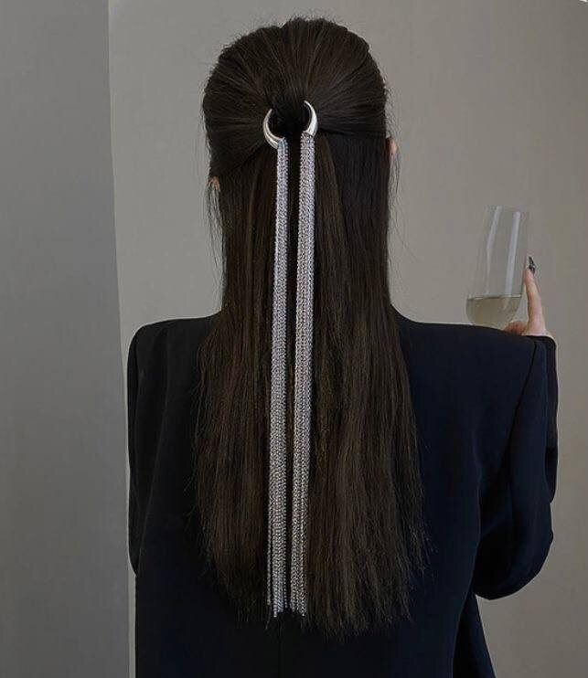 Заколку можно закрепить за хвост, пучок или даже на распущенные волосы, собранные сзади!)
