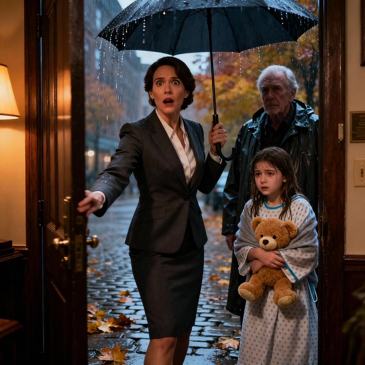 За его спиной стояла девочка. Худенькая, лет двенадцати, с большими зелёными глазами. В руках — плюшевый медвежонок, на лице — следы усталости.