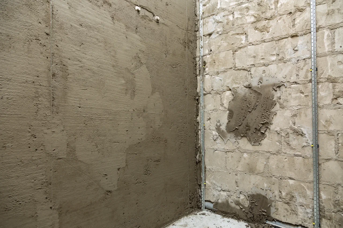 Перед началом работ убедитесь, что стена полностью сухая. Проверьте влагомером: для бетона допустимо не более 3% влаги, для других поверхностей — не более 5%.