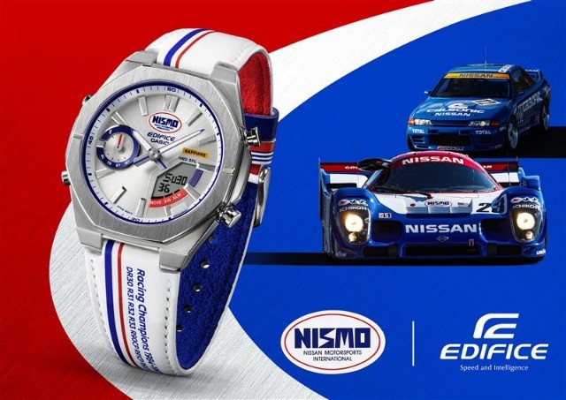 Компания Casio Computer 12 сентября 2025 года выпускает специальную коллаборационную модель — EDIFICE NISMO Heritage Edition (ECB-S10NIS-7AJR), разработанную при полном участии Nissan и NISMO. Цена — 44 000 иен, предзаказ стартанул 1 сентября. Модель посвящена истории NISMO, начиная с её основания в 1984 году, и вдохновлена легендарными гоночными машинами, включая R91CP — победителя 24 часов Дайтоны 1992 года (первый японский автомобиль, выигравший гонку в абсолютном зачёте). Дизайн и детали: