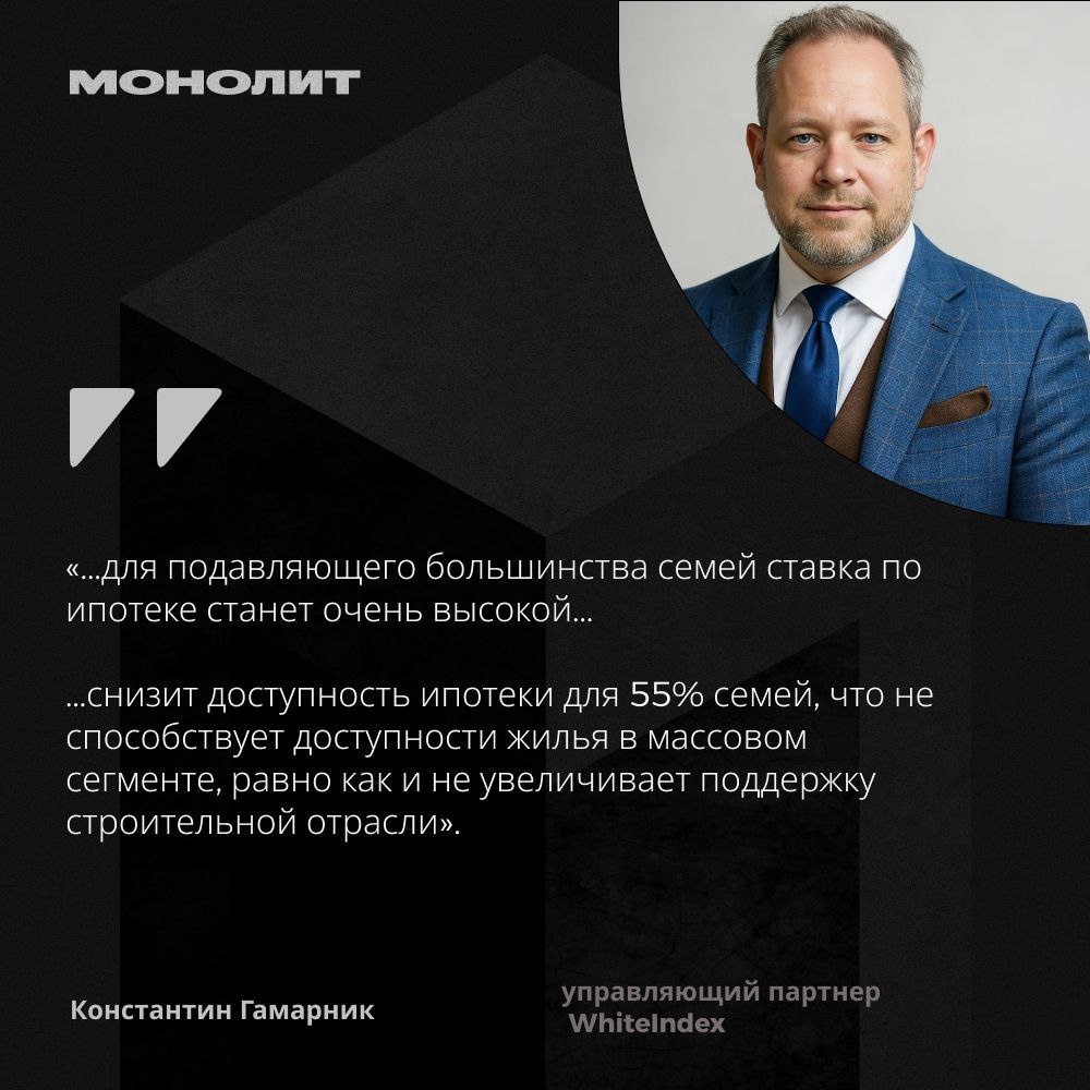 👤Дифференцированные ставки не сделают ипотеку массовой 🗣️Мнение Константина Гамарника, управляющего партнера WhiteIndex: Текущий проект дифференциации ставки семейной ипотеки предполагает внедрение модели, при которой размер ставки зависит от количества детей в семье: • 4% для семей с 3 и более детьми; • 5% для семей с двумя детьми; • 12% для семей с одним ребенком. При этом: • Доля семей с одним ребенком составляет 55% и ставка для них составит 12%; • Доля семей с двумя детьми составляет 33% и ставка для них составит 6%; • Доля семей с 3 и более детьми 12% и ставка для них составит 4%. Таким образом, для подавляющего большинства семей ставка по ипотеке станет очень высокой, хотя и ниже текущей рыночной ставки. То есть льготная ставка сохранится только для 45% семей с детьми. Поэтому, если рассматривать программу, как стимул для роста рождаемости, то она сокращает возможности для большинства семей с детьми. Опросы общественного мнения показывают – 68% семей считают, что снач