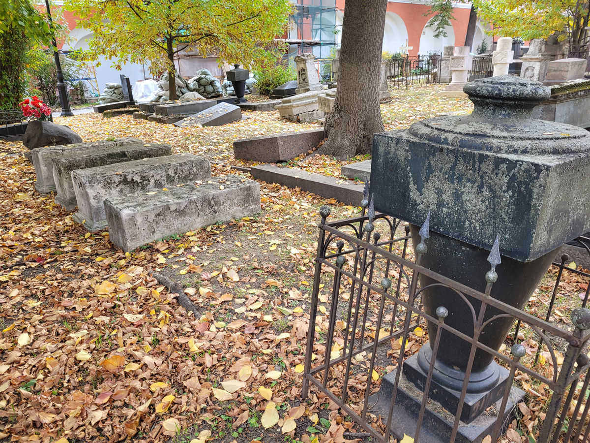 4 участок Справа налево надгробия: П.М. Яблочкова, предположительно -- В.П. Ползунова и трое неизвестных. Петр Михайлович Яблочков (1770-1840) — болярин.