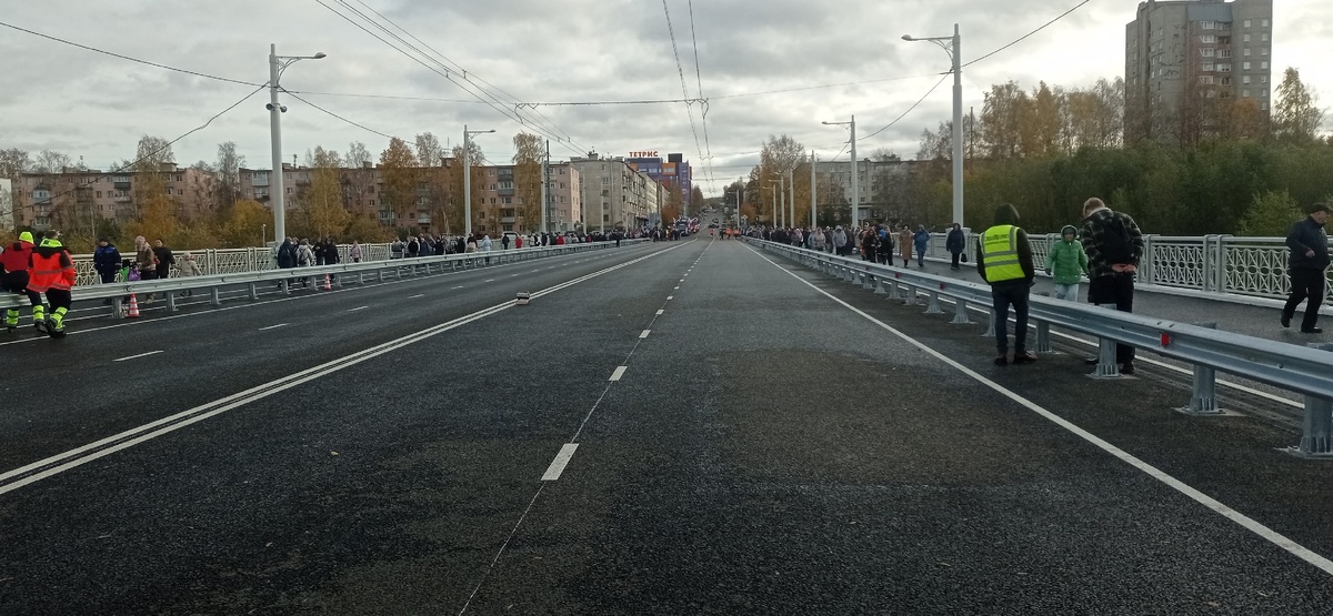 Первые пешеходы прошли по новому мосту в Петрозаводске