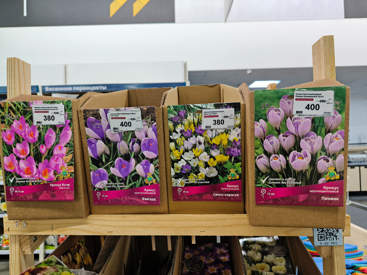 Скидки сейчас по всей сети "Лемана Про". Видела обзоры садоводов из Москвы и других городов. Правда, ассортимент и величина скидки отличаются. В ТЦ "Мега" ассортимент небольшой, но выбрать есть из чего. Особенно много крокусов. Но это как раз то мелколуковичное, которое у меня не хочет расти. Поэтому перестала покупать крокусы. Но есть садоводы у кого они успешно размножаются. Все индивидуально.