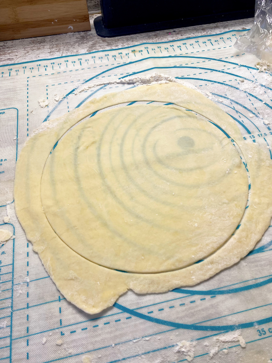 Захотелось мне вкусного, но не сильно сладкого. Торт Наполеон стал решением моего желанию. Тесто легче не бывает: 150 грамм холодной воды 1 яйцо 200 грамм сливочного масла. Я беру не очень дорогое. Растопила. 1 столовая ложка уксуса, обычного. муки у меня ушло примерно 600 грамм. Все смешала. Тесто разделила на восемь частей. Скатала из них шарики и убрала в холодильник на 20 минут. Из каждой части раскатала вот такой тонкий круг. Вырезала форму крышкой от кастрюли. Обязательно протыкайте круг вилкой почаще, чтобы не вздувался. Духовку разогрела до 180 градусов и выпекала на глаз. Примерно по десять минут, вынимала, когда начинали подрумяниваться. В этот раз решила печь на двух уровнях. Так как процесс выпекания шёл быстро, заранее накатала ещё кругов. Обрезки от кругов теста тоже выпекала. Отдельно складывала их в тарелку. Напекла вот такую пирамидку. Заварной крем проще не бывает: 1 литр молока 2 яйца 3 столовые ложки крахмала. Так как крахмал вдруг у меня закончился, заменила его м