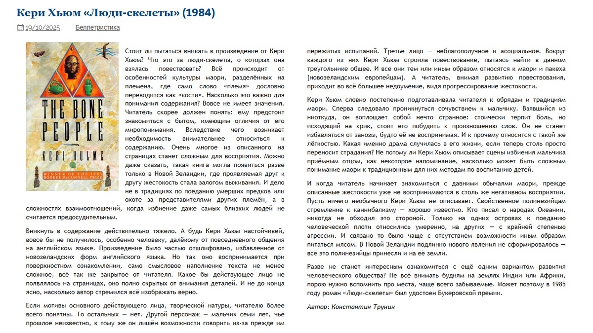 Кери Хьюм "Люди-скелеты" (1984) | Критика