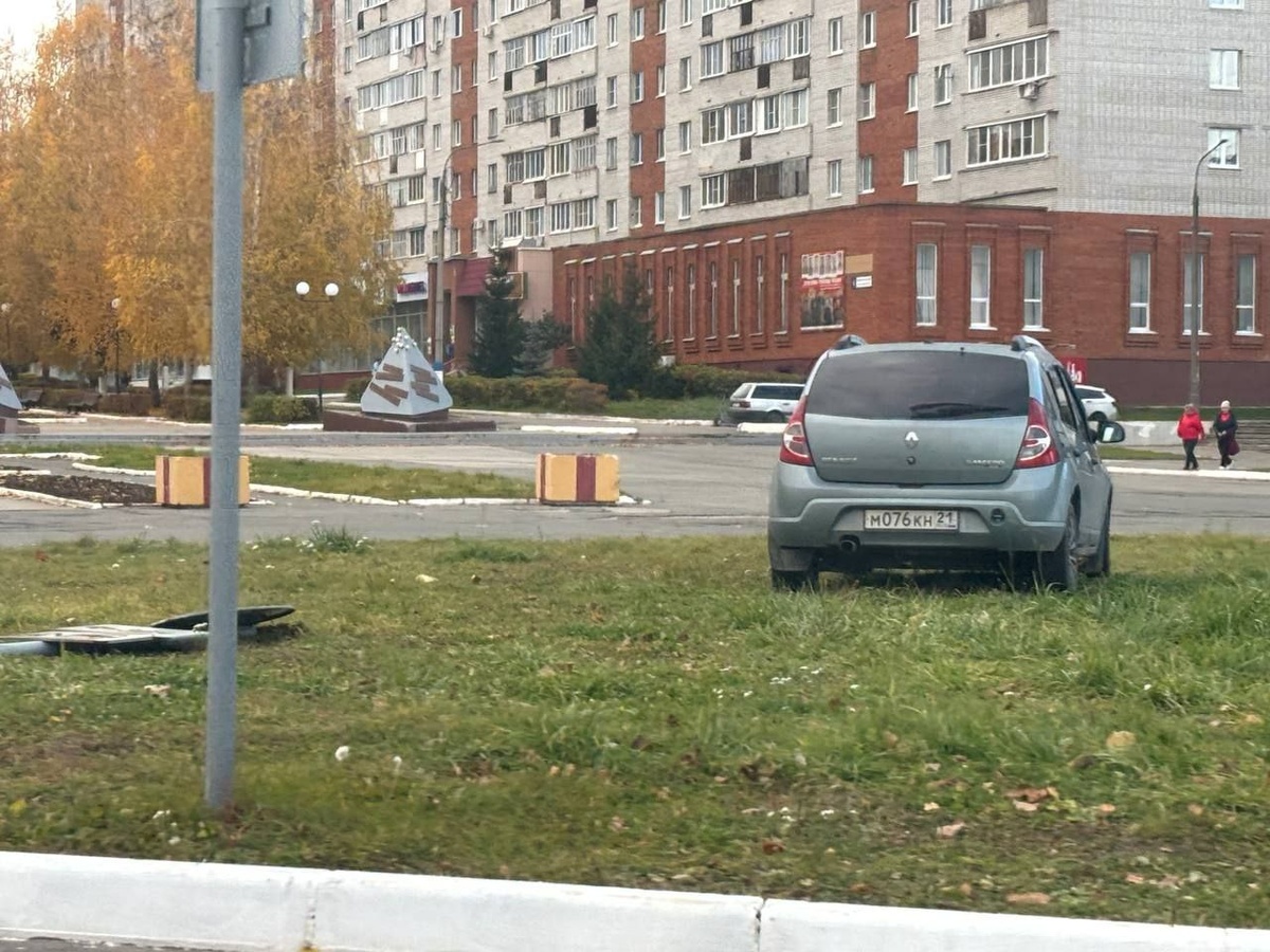 В Новочебоксарске водитель Рено потерял сознание за рулем, съехал на газон и врезался в дорожный знак на улице Винокурова
