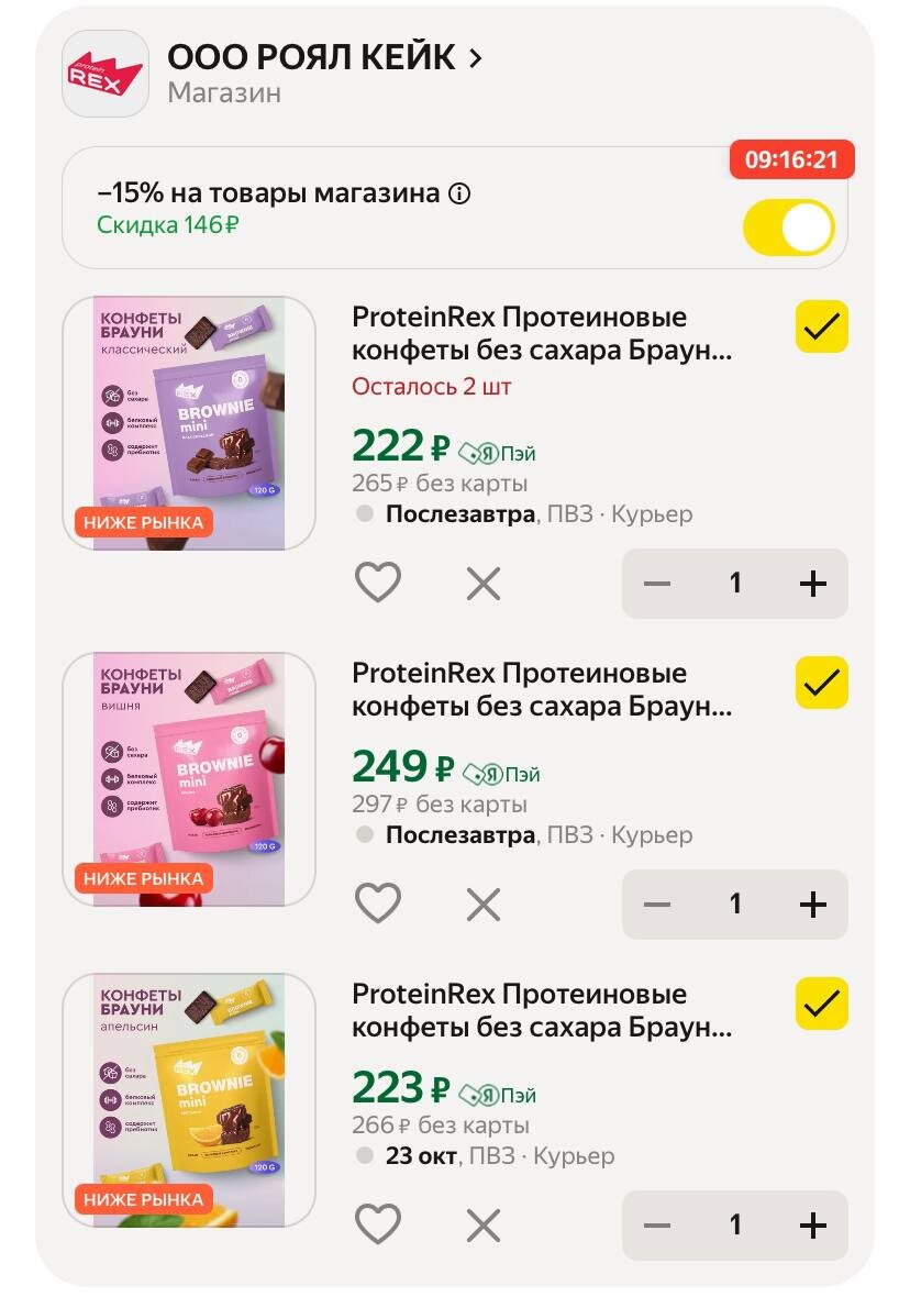ProteinRex Протеиновые конфеты без сахара Брауни Шоколад 120 г, спортпит https://market.yandex.ru/cc/7pYh62 ProteinRex Протеиновые конфеты без сахара Брауни Вишня 120 г, спортпит https://market.yandex.ru/cc/7pYhrr ProteinRex Протеиновые конфеты без сахара Брауни Апельсин 120 г, спортпит https://market.yandex.ru/cc/7pYiMw В корзине двигаем бегунок Актуально на момент публикации Подписаться на канал: https://dzen.ru/id/65f30992106fab2943124639 #покупки #отзывы #экономия #скидки #распродажа #промокоды #пп #конфеты