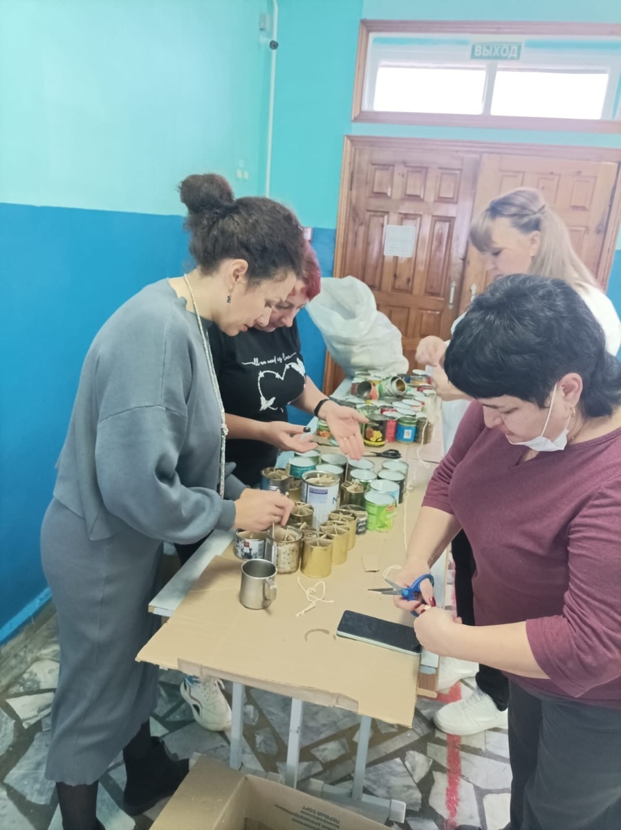 На базе Магинской СОШ была проведена акция «Блиндажная свеча - подари тепло», которая направлена на помощь военнослужащим в зоне СВО для обеспечения их средством обогрева укрытий, быстрого разогрева и приготовления пищи, сушки одежды в полевых условиях. Учителя Магинской СОШ, специалисты Магинского СМФК и администрации СП Магинской сельсовет своими руками из подручных средств изготовили так называемые «блиндажные свечи». Это специальные свечи - горелки из жестяных банок, расплавленного воска и плотного картона, существенно отличающиеся от бытовых. Такой прибор может согреть долгие часы без перерыва, а силы огня хватит для того, чтобы приготовить обед. Благодарим всех участников за оказанное содействие в проведении акции. Пусть нашим бойцам будет тепло не только от огня свеч, но и от мысли, что о них заботятся, верят и ждут!