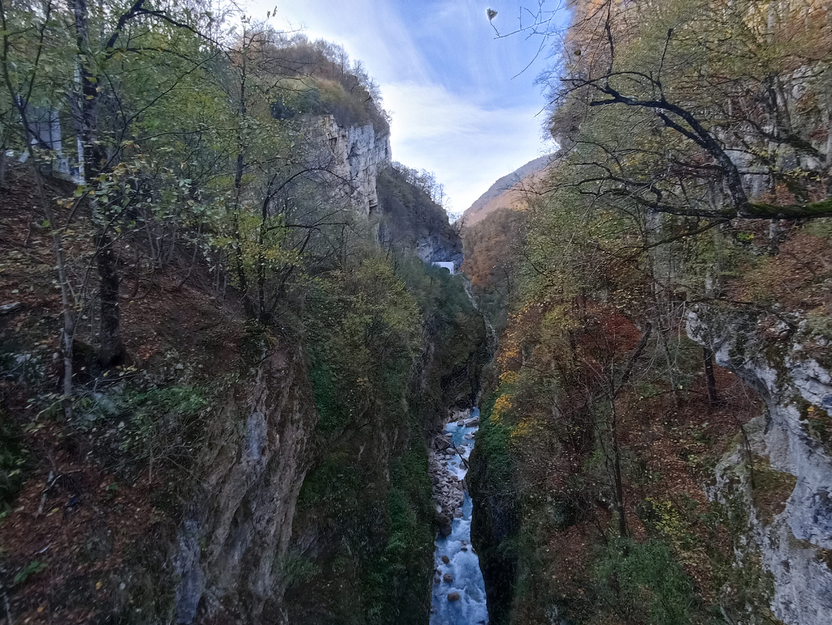 Оставляете машину на оборудованной парковке и проходите несколько метров до моста. Каньон доступен в любое время суток и время года бесплатно. Но лучше и безопаснее посещать его в светлое время суток. Во время дождя или снегопада лучше тоже воздержаться от поездок. Всё-таки это горная местность, где могут быть обвалы, лавины.