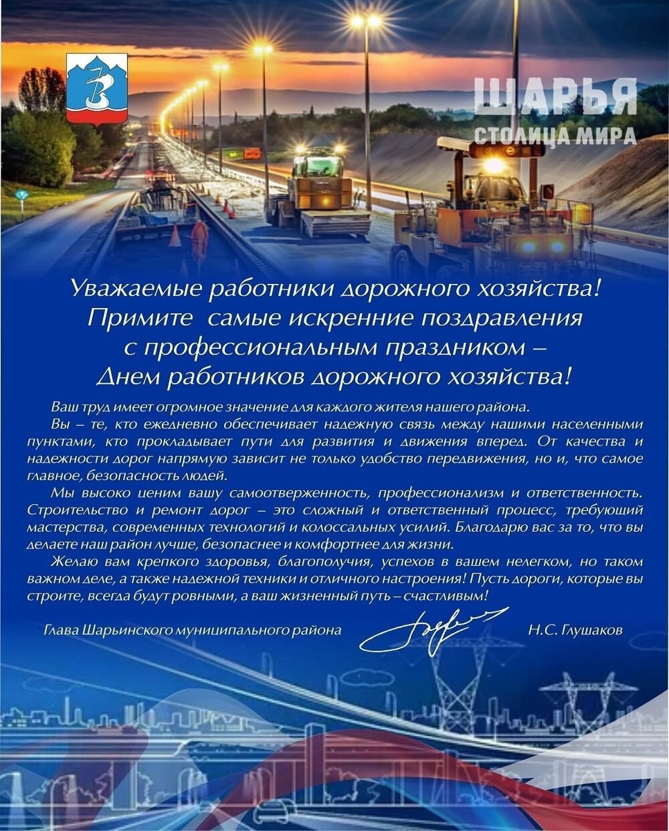 Поздравление с Днём работников дорожного хозяйства от главы Шарьинского района Николая Глушакова