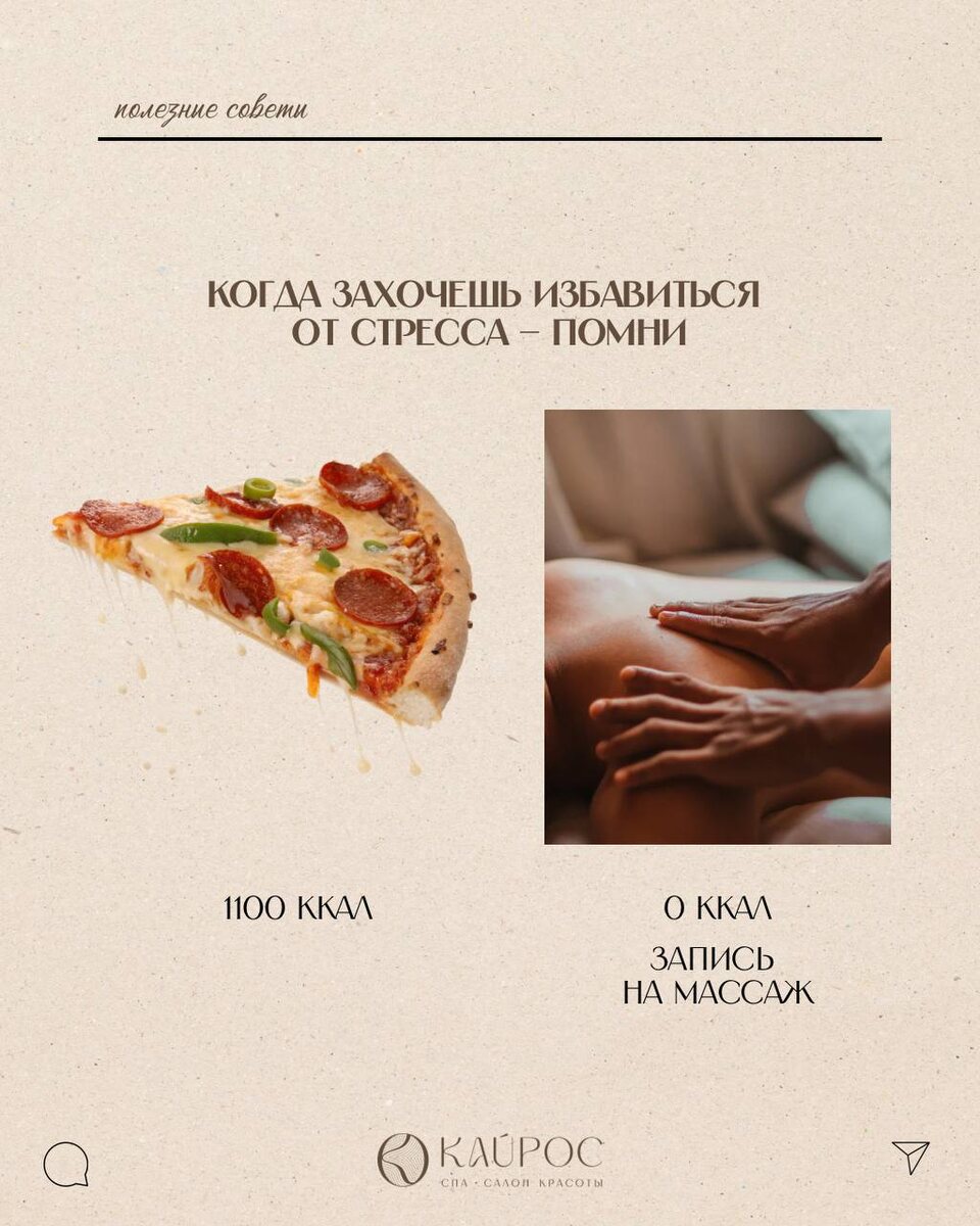Стресс — не повод заедать тревогу! Калории от лишнего кусочка накапливаются быстро, а хорошее настроение — не от еды, а от заботы о себе. В салоне Кайрос замените вредные привычки на удовольствие без калорий✨ Лучше записаться к нам, чем съесть лишнее! Выбирайте здоровье и красоту! https://dikidi.ru/kairosparnas