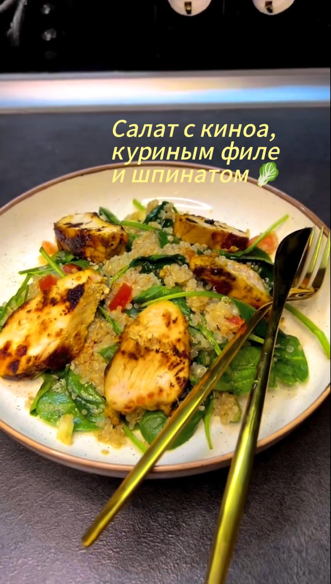 Всем доброго времени суток! Блюда из киноа постепенно становятся все популярнее, рецепты с киноа очень полезные – это настоящий суперфуд! Поэтому сохраняйте рецепт не обычного, вкусного и полезного салата с киноа 🥗 Ингридиенты * Куриное филе – 1 шт * Шпинат свежий - 200г * Киноа – 200г * Помидор – 1 шт * Огурец или авокадо - 1шт * Специи, лимон, оливковое масло Приготовление: - Предварительно советую замариновать куриное филе в специях, добавьте немного майонеза, ваше филе будет нежнейшим - Куриное филе обжариваем и нарезаем на слайсы - Киноа отвариваем как указано на упаковке - Нарезаем кубиками помидор и огурец - Смешиваем шпинат, овощи и киноа, заправляем лимонным соком и оливковым маслом - Выкладываем на тарелку и дополняем куриными слайсами Это очень вкусно, ярко, красиво!!!! Приятного аппетита 👩🏼🍳 Мы верим, что готовить может каждый, а кулинария — это увлекательное приключение. На нашем канале вы найдете вдохновение, работающие рецепты и откровенные отз