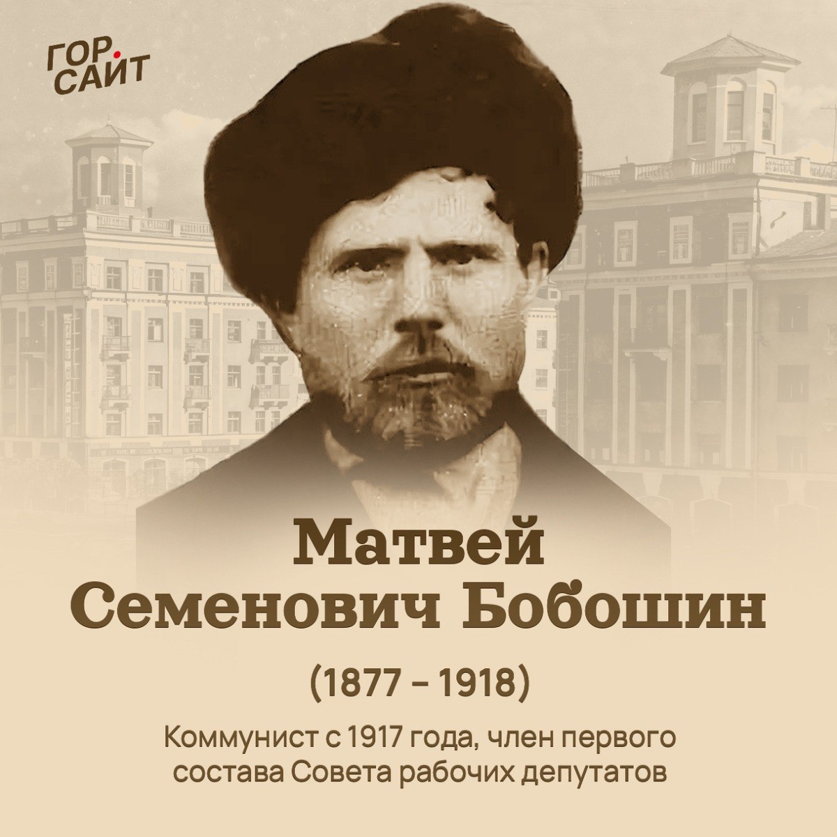 #Мемориальные_доски_Полевского Матвей Семенович Бобошин (1877 – 1918) Родился 29 июня 1877 года. Закончил гимназию с похвальной грамотой. Был потомственным рабочим, вальцовщиком прокатного цеха Полевского железоделательного завода. У Матвея Семеновича и его жены Варвары Дмитриевны было семеро детей: 3 сына и 4 дочери. 22 июля 1918 года белогвардейцы расстреляли Матвея Бобошина за революционную деятельность рядом с дорогой на Полдневую. Перед расстрелом арестованных красногвардейцев белогвардейцы заставляли самим себе рыть могилы. Но Матвей Семенович отказался копать, побежал со словами: «Умираю за советскую власть». Крутой спуск, бывший Вознесенский переулок, был назван улицей Бобошина. В 2008 году на фасаде жилого дома №4 по улице Бобошина была установлена Мемориальная доска из серого мрамора. Текст надписи: «Улица названа в честь Бобошина Матвея Семеновича уроженца Полевского завода, потомственного рабочего, члена Российской социал-демократической рабочей партии большевиков, поги